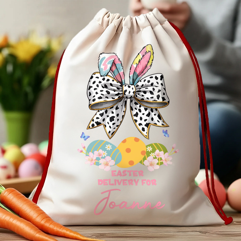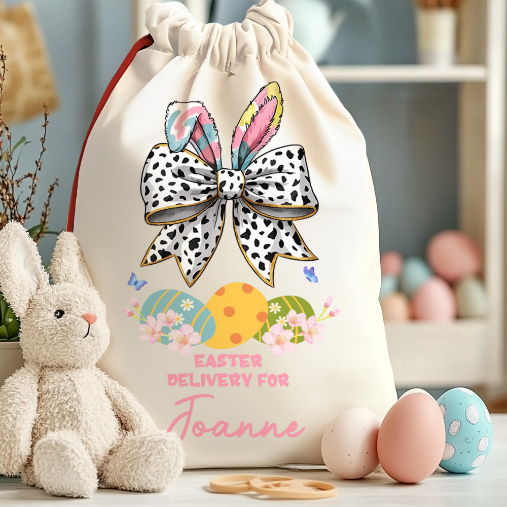 Die Tasche kann mit Namen personalisiert werden, sodass Sie ein einzigartiges Ostergeschenk für Ihre Kinder, Familie oder Freunde kreieren können.